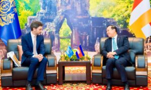 ភ្នំពេញ៖ ក្រសួងការបរទេស និងសហប្រតិបត្តិការអន្តរជាតិ រាជរដ្ឋាភិបាលកម្ពុជាបានធ្វើការតវ៉ាជាផ្លូវការ ចំពោះវត្តមានដោយគ្មានការអនុញ្ញាតរបស់នាវា កងទ័ពជើងទឹកថៃ និងការអនុវត្តនីតិថៃ ដោយល្មើសច្បាប់នៅក្នុងដែនសមុទ្រកម្ពុជា នាថ្ងៃទី២២ ខែកុម្ភៈ ឆ្នាំ២០២៦។ សកម្មភាពរបស់ទ័ពជើងទឹកថៃ រួមមានទាំងការចាប់ខ្លួនពលរដ្ឋកម្ពុជាបីនាក់ ព្រមទាំងការរឹបអូសនាវានេសាទ...
