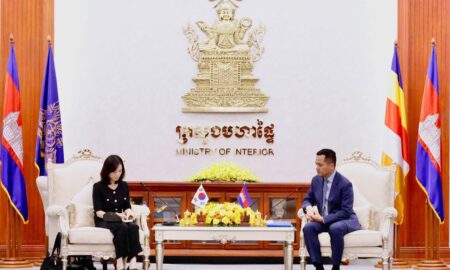 ភ្នំពេញ ៖ នារសៀលថ្ងៃសុក្រ ទី១៧ ខែតុលា ឆ្នាំ២០២៥ នេះ លោក ឧបនាយករដ្ឋមន្ត្រី ស សុខា រដ្ឋមន្ត្រីក្រសួងមហាផ្ទៃ បានទទួលជួបពិភាក្សាការងារជាមួយលោកស្រី គីម ជីណា (KIM Jina) អនុរដ្ឋមន្ត្រីទី២ នៃក្រសួងការបរទេសកូរ៉េ និងសហការី នៅសាលទទួលភ្ញៀវអន្តរជាតិ នៃទីស្តីការក្រសួងមហាផ្ទៃ...