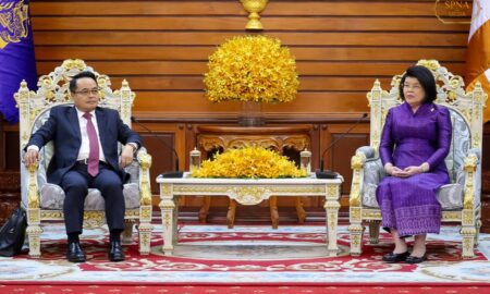 ភ្នំពេញ ៖ ក្នុងឱកាសទទួលជួបសវនាការ ជាមួយគណៈប្រតិភូ អាជ្ញាធរសវនកម្មជាតិឡាវ សម្តេច ឃួន សុដារី ប្រធានរដ្ឋសភាកម្ពុជា មានប្រសាសន៍ថា ចំណងមិត្តភាពជាប្រពៃណី និងបងប្អូន រវាងកម្ពុជា និងឡាវ បានបង្កលក្ខណៈអំណោយផលយ៉ាងខ្លាំងដល់ការអភិវឌ្ឍ សុខសន្តិភាព និងស្ថិរភាព ជូនប្រជាពលរដ្ឋនៃប្រទេសទាំងពីរ។ សម្តេច បានគូសបញ្ជាក់ថា ប្រទេសទាំងពីរប្រៀបដូចជាដន្លងនឹងគ្នា ហើយតែងប្រកាន់ខ្ជាប់នូវទិសស្លោក...