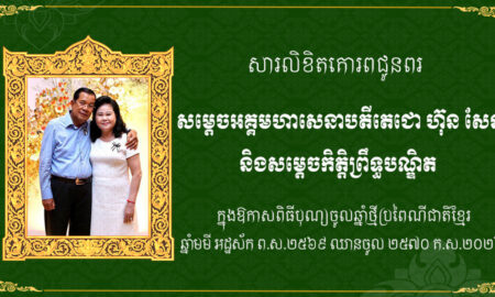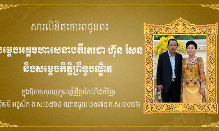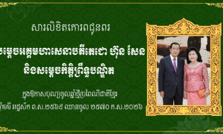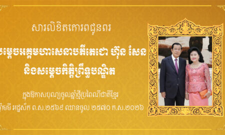 ភ្នំពេញ៖ អ្នកឧកញ៉ា ទៀ វិចិត្រ និងលោកជំទាវ សូមផ្ញើសារគោរពជូនពរសម្ដេចតេជោ និងសម្ដេចកិតិ្តព្រឹទ្ធបណ្ឌិត ក្នុងឱកាសពិធីបុណ្យចូលឆ្នាំថ្មី ប្រពៃណីជាតិខ្មែរ ឆ្នាំមមី អដ្ឋស័ក ព.ស.២៥៧០ គ.ស.២០២៦ ដែលនឹងឈានចូលមកដល់នៅថ្ងៃអង្គារ ១២រោច ខែចេត្រ ឆ្នាំ មមី អដ្ឋស័ក ព.ស.២៥៦៩ ត្រូវនឹងថ្ងៃទី១៤ ខែមេសា...