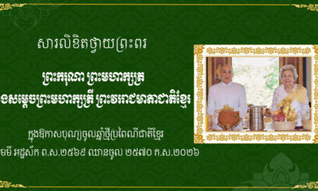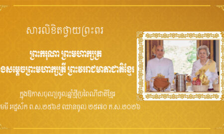 ភ្នំពេញ ៖ ទូលព្រះបង្គំជាខ្ញុំ នេត្រ ភក្ត្រា រដ្ឋមន្ត្រីក្រសួងព័ត៌មាន និងលោកជំទាវ ព្រមទាំងមន្ត្រីរាជការទាំងអស់ សូមក្រាបបង្គំទូលថ្វាយព្រះពរ សូមព្រះបារមី ព្រះមហាស្វេតច្ឆត្រនិងវត្ថុស័ក្តិសិទ្ធិក្នុងលោក ព្រមទាំងបារមីនៃព្រះវិញ្ញាណក្ខន្ធ អតីតព្រះមហាក្សត្រ ព្រះមហាក្សត្រីយានីគ្រប់ព្រះអង្គ ប្រោសប្រទានពរជ័យសិរីមង្គលថ្វាយ សម្តេចព្រះមហាក្សត្រី នរោត្តមមុនីនាថ សីហនុ ព្រះវររាជមាតាជាតិខ្មែរ ក្នុងសេរីភាពសេចក្ដីថ្លៃថ្នូរ និង សុភមង្គល...