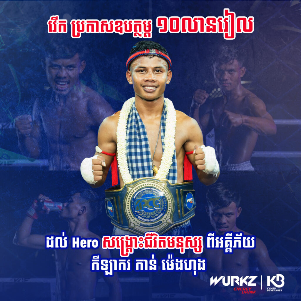 អំពើល្អមិនសាបសូន្យ! ដើម្បីជាការលើកទឹកចិត្តដល់ភាពអង់អាចក្លាហានរបស់វីរបុរសយើង វើក ប្រកាសឧបត្ថម្ត ១០លានរៀល ដល់កីឡាករ កាន់ ម៉េងហុង ដែលជាម្ចាស់ខ្សែក្រវាត់អន្តរជាតិ IPCC ពី WURKZ សេនាគុនខ្មែរយ័ន៨ទិស រដូវកាលទី៣ 🇰🇭💪