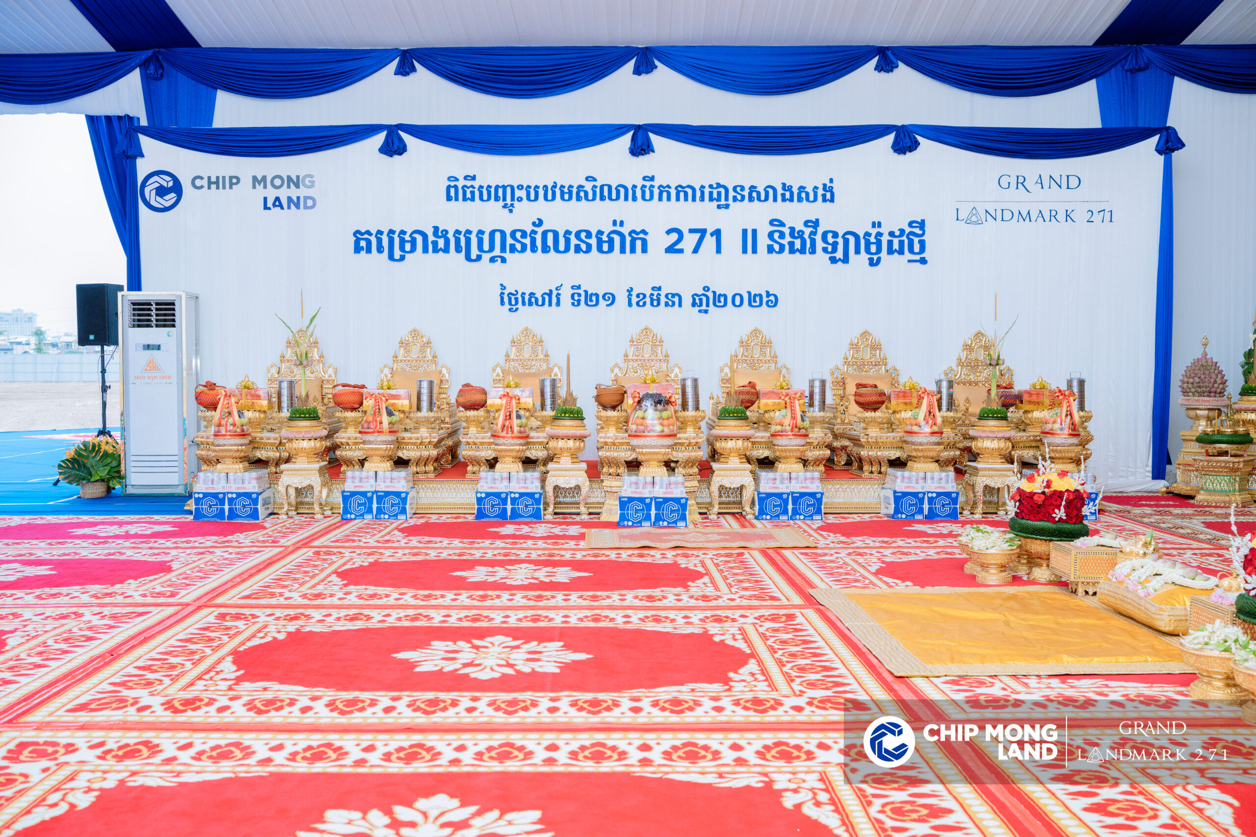 ភ្នំពេញ, ថ្ងៃទី ២១ ខែមីនា ឆ្នាំ២០២៦៖ ក្រោយពីទទួលបានការគាំទ្រលើសពីការរំពឹងទុក កាលពី 3 សប្តាហ៍មុន ដោយក្រុមហ៊ុន ជីប ម៉ុង លែន បានអង្រួនទីផ្សារអចលនទ្រព្យជាមួយ ពិធីបើកការដ្ឋានសាងសង់ផ្ទះម៉ូដថ្មី ហូម អហ្វហ្វីស៍ II (Home Office II) ឥឡូវនេះក្រុមហ៊ុន ជីប ម៉ុង លែន បានប្រារព្ធពិធីបញ្ចុះបឋមសិលាបើកការដ្ឋានសាងសង់ គម្រោង ហ្រ្គេនលែនម៉ាក 271 II និងវីឡាម៉ូដថ្មី 3 បន្ថែមទៀត ដែលជារីឡាស្ថិតក្នុង “Grand Series” របស់គម្រោង ហ្រ្គេនលែនម៉ាក 271 រួមមាន៖