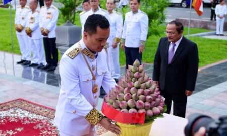 ភ្នំពេញ ៖ នៅព្រឹកថ្ងៃពុធ ទី២៤ ខែកញ្ញា ឆ្នាំ២០២៥ នេះ លោកឧបនាយករដ្ឋមន្ត្រី ស សុខា រដ្ឋមន្ត្រីក្រសួងមហាផ្ទៃ បានអញ្ជើញដឹកនាំប្រតិភូក្រសួងមហាផ្ទៃ ដាក់កន្ត្រកផ្កាអបអរសាទរ ទិវារំលឹកខួប ៣២ឆ្នាំ នៃការប្រកាសឱ្យប្រើប្រាស់រដ្ឋធម្មនុញ្ញ នៃព្រះរាជាណាចក្រកម្ពុជា នៅនីតិបូជនីយដ្ឋាន វិមានរដ្ឋធម្មនុញ្ញ សួនច្បារខាងលិចវិមានឯករាជ្យ រាជធានីភ្នំពេញ។ សូមរំលឹកថា...