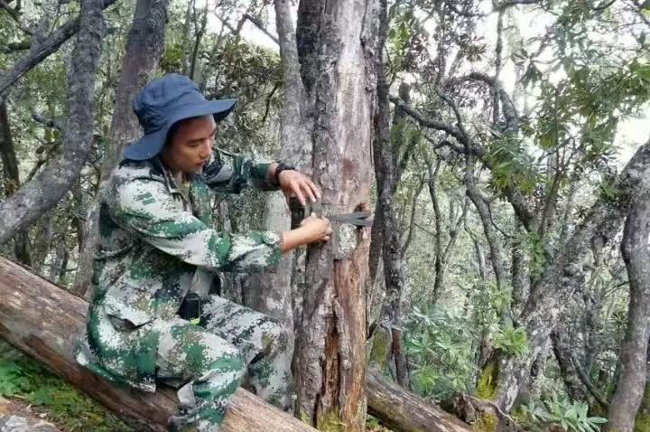 Yu Zhonghua installs an infrared camera for wildlife monitoring in the Baima Snow Mountain Nature Reserve, southwest China’s Yunnan province. (Photo provided by Yu Zhonghua)
