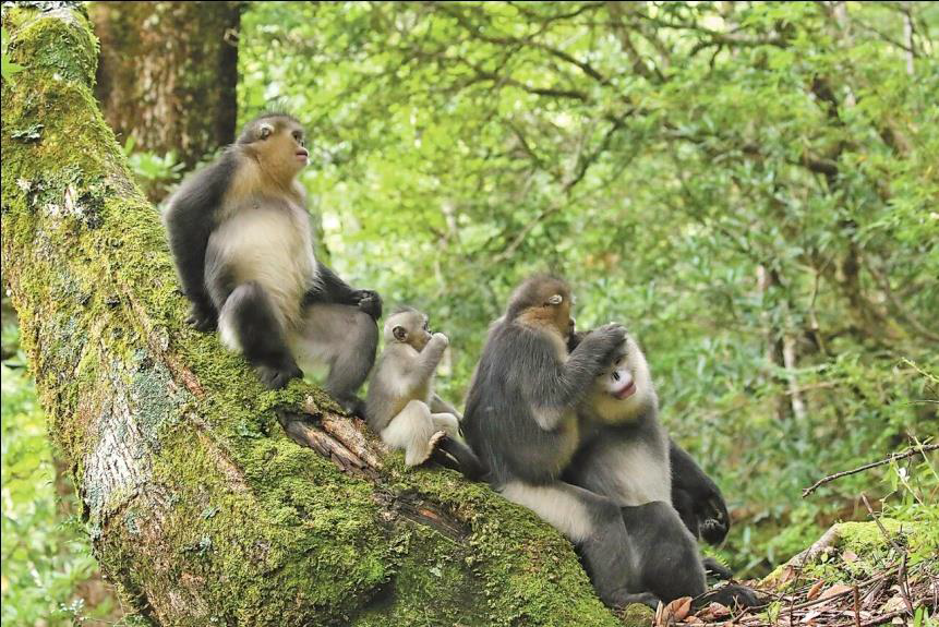 Photo shows Yunnan snub-nosed monkeys in the Baima Snow Mountain Nature Reserve, southwest China’s Yunnan province. (Photo/He Xinming)