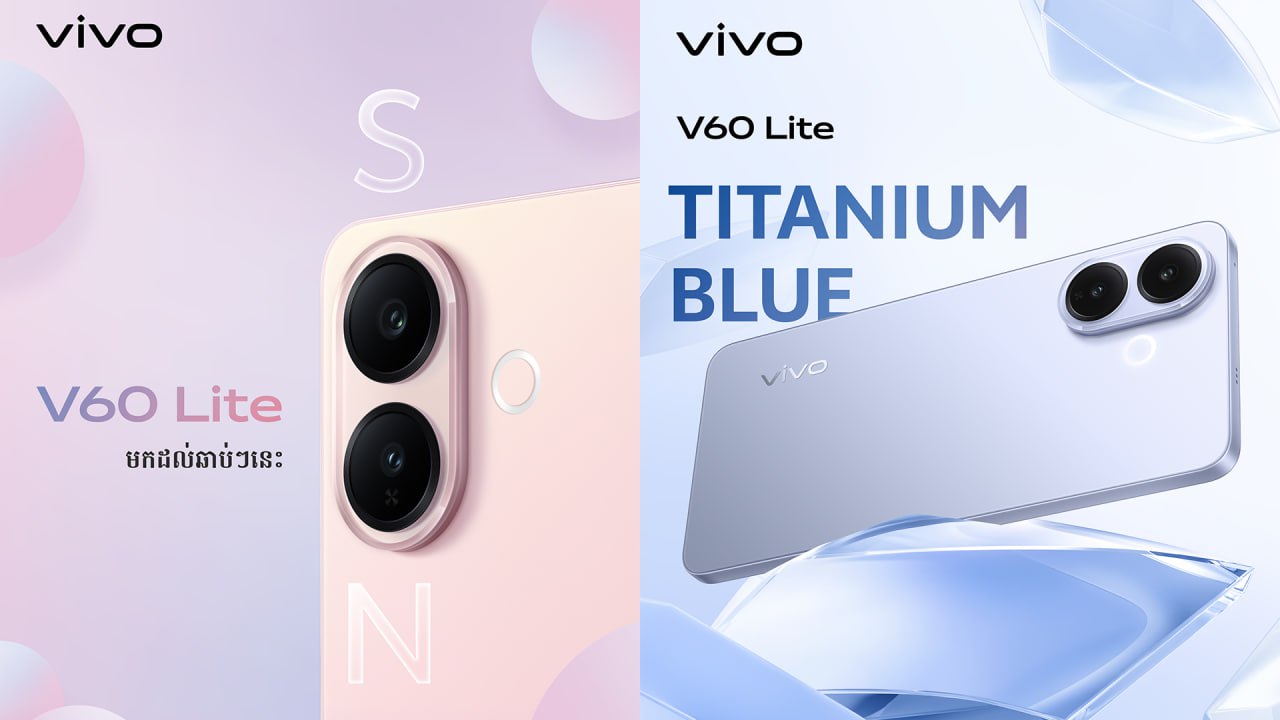 កម្ពុជា, ខែវិច្ឆិកា ឆ្នាំ២០២៥ — vivo បាននាំមកនូវ V60 Lite ដែលឥឡូវនេះបានបើកឱ្យបញ្ជាទិញជាមុន។ V60 Liteបានមកជាមួយ ជម្រើសពណ៌ Pop Pink, Titanium Blue និង Elegant Black ដែលត្រូវបានរចនាឡើងសម្រាប់បទពិសោធន៍កម្សាន្តដ៏រលូនជាមួយអេក្រង់ AMOLED ទំហំ 6.77 អ៊ីញ មានអត្រា Refresh 120Hz  កម្រិតសំឡេងរហូតដល់ 400% Dual Stereo Speakers និងថាមពលថ្ម BlueVolt 6500mAh និងបច្ចេកវិទ្យាសាកថ្មលឿន 90W។
