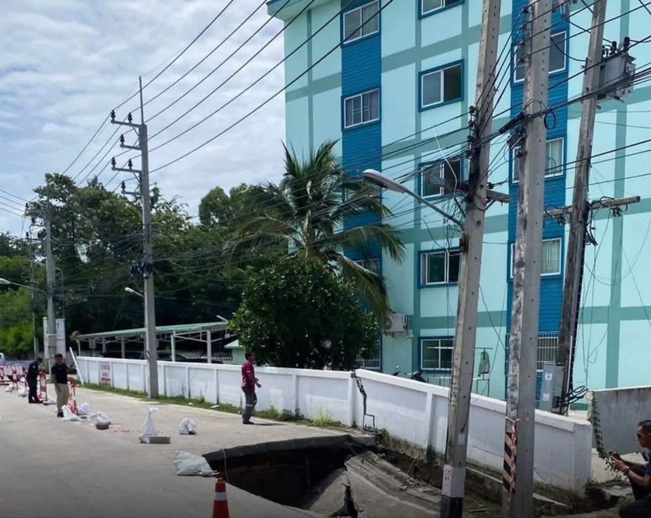 តាមការសាកសួរ គឺ ផ្លូវបានចាប់ផ្តើមបាក់ស្រុត ហើយលិចតាំងពីម្សិលមិញ។ នេះបាក់ស្រុតនេះវាជាលើកដំបូង ដែលដូចទៅនឹងផ្លូវបាក់ស្រុតនៅទីក្រុងបាងកក ។ បង្គោលអគ្គិសនីផ្អៀង ហើយជញ្ជាំងអន្តេវាសិកដ្ឋានក៏រលំ។