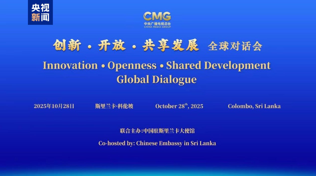 នៅថ្ងៃទី ២៨ ខែតុលា តាមម៉ោងក្នុងតំបន់ កិច្ចសន្ទនាសកលស្តីពី”នវានុវត្តន៍ ភាពបើកទូលាយ និងចែករំលែកសមិទ្ធផលអភិវឌ្ឍន៍រួម” ដែលសហការរៀបចំដោយអគ្គស្ថានីយវិទ្យុ និងទូរទស្សន៍មជ្ឈិមចិន និងស្ថានទូតចិនប្រចាំនៅស្រីលង្កា បានបើកធ្វើនៅទីក្រុងកូឡុំបូ ។ លោក Shen Haixiong អនុរដ្ឋមន្ត្រី នៃក្រសួងឃោសនាការ នៃគណៈកម្មាធិការមជ្ឈិមបក្សកុម្មុយនីស្តចិន និងជាអគ្គនាយកនៃអគ្គស្ថានីយវិទ្យុ និងទូរទស្សន៍មជ្ឈិមចិន បានថ្លែងសុន្ទរកថាតាមប្រព័ន្ធវីដេអូ ។