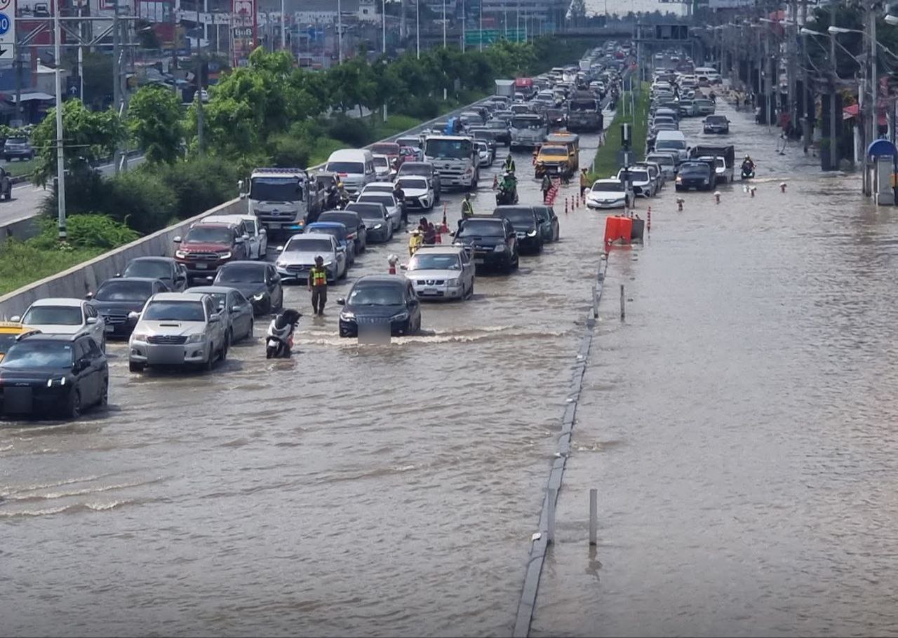 ព្រឹកនេះ ទឹកពីទន្លេចៅប្រាយ៉ា ត្រូវបានគេរកឃើញថា បានហក់ និងជន់លិចតំបន់ផ្លូវក្រោមចំណុច U-turn ក្រោមស្ពាន Rama 5 ខាង Bang Si Muang ស្ថិតក្នុងឃុំ Bang Phai ស្រុក Muang ខេត្ត Nonthaburi ។ ទាំងផ្លូវចូល និងផ្លូវចេញ ជាពិសេសផ្លូវសេវា (ឬផ្លូវស្របគ្នា) ទាំងសងខាងត្រូវបានប៉ះពាល់។ ទឹក​ដែល​ឈរ​លើ​ផ្ទៃ​ផ្លូវ​មាន​កម្ពស់​ជាង ៥០​សង់ទីម៉ែត្រ ហើយ​នៅ​កន្លែង​ខ្លះ​មាន​កម្ពស់​ជាង ៦០​សង់ទីម៉ែត្រ ដែល​ធ្វើ​ឲ្យ​រថយន្ត​តូច និង​ម៉ូតូ​មិន​អាច​ធ្វើ​ដំណើរ​បាន។