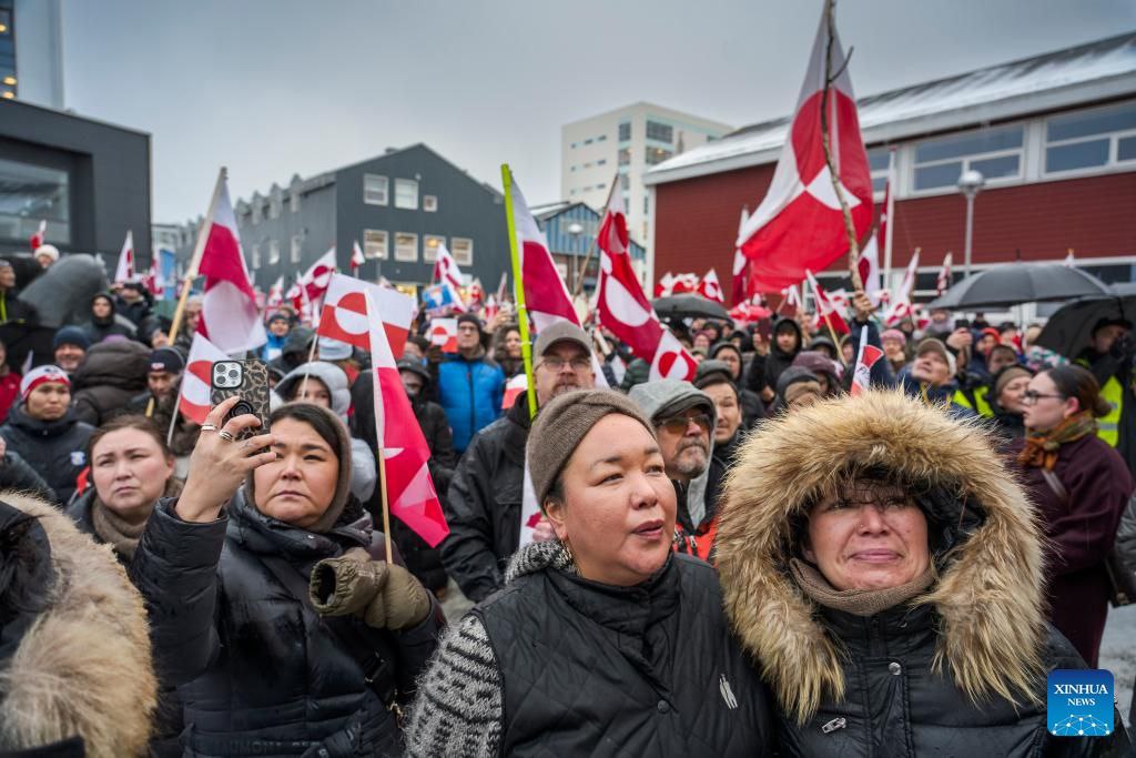 ក្រុមបាតុករបានគ្រវីទង់ជាតិដាណឺម៉ាក និង Greenland ដោយស្រែកថា “Greenland មិនមែនសម្រាប់លក់ទេ” នៅពេលដែលពួកគេបានធ្វើដំណើរទៅកាន់ស្ថានកុងស៊ុលសហរដ្ឋអាមេរិកក្នុងស្ថានភាពត្រជាក់ខ្លាំង។ ប្រព័ន្ធផ្សព្វផ្សាយក្នុងស្រុកបានពិពណ៌នាវាថា ជាការតវ៉ាដ៏ធំបំផុតនៅក្នុងប្រវត្តិសាស្ត្រថ្មីៗរបស់កោះនេះ។