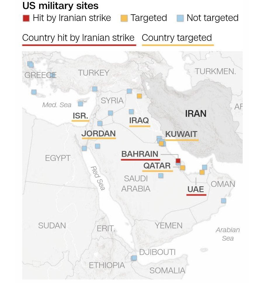 ๐ฎ๐ท๐บ๐ธ Iran simultaneously targets US military assets across the Middle East with ballistic missiles fired at: