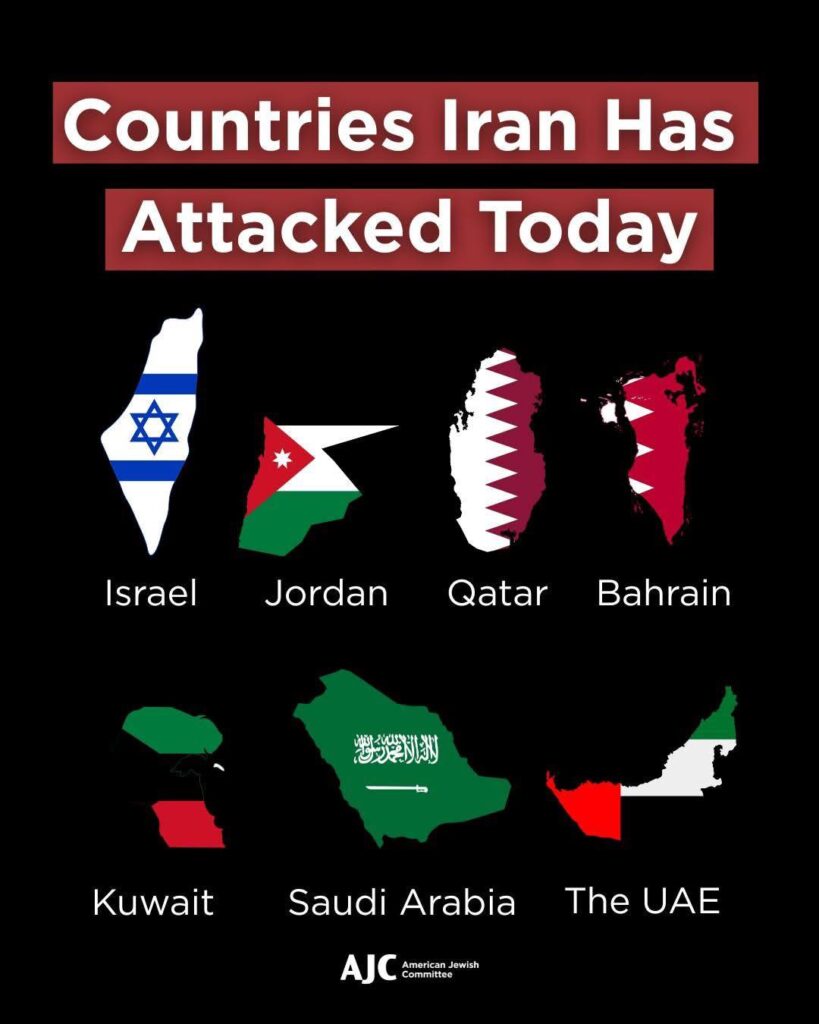 ថ្ងៃនេះ ប្រទេសបារ៉ែន ហ្ស៊កដានី គុយវ៉ែត កាតា អារ៉ាប៊ីសាអូឌីត និងអារ៉ាប់រួម សុទ្ធតែត្រូវបានវាយប្រហារដោយរបបអ៊ីរ៉ង់។