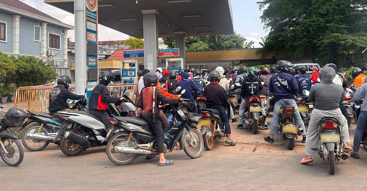 ប្រទេសឡាវ មានស្ថានីយ៍ចាក់សាំងទូទាំងប្រទេសចំនួន ២.៥៣៨ ប៉ុន្តែបានបិទអស់ ១.០៦១ស្ថានីយ៍ហើយ ខណៈមនុស្សរាប់រយនាក់កំពុងតម្រង់ជួរទិញប្រេង