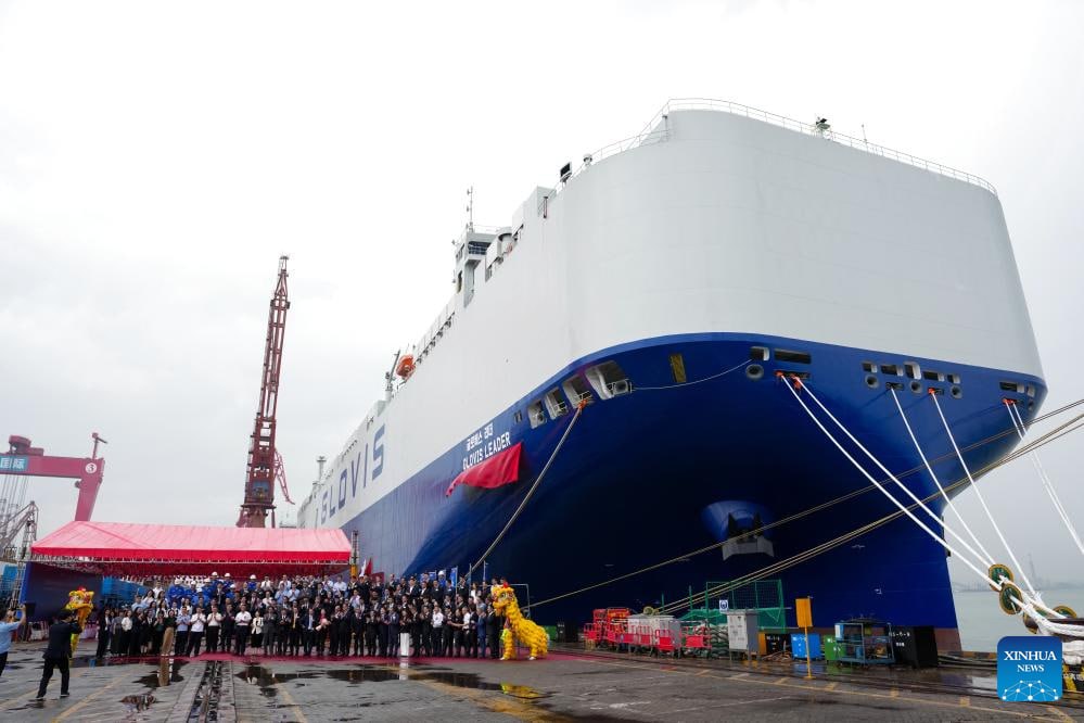 បរទេស៖ នាវាផ្ទុករថយន្ត ដែលមានសមត្ថភាពផ្ទុករថយន្តអតិបរមាចំនួន ១០.៨០០ គ្រឿង ដែលត្រូវបានពិពណ៌នាថា ជានាវាធំជាងគេបំផុត របស់ពិភពលោក ត្រូវបានប្រគល់ជូនក្រុមហ៊ុនដឹកជញ្ជូន នៅថ្ងៃអង្គារនៅទីក្រុងក្វាងចូវភាគខាងត្បូងប្រទេសចិន។