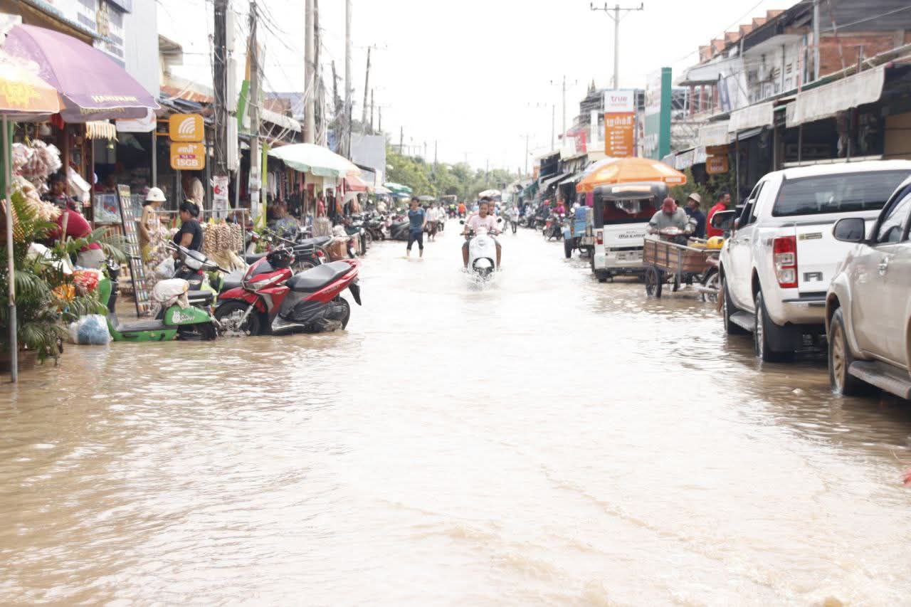 ផ្សារពួក ខេត្តសៀមរាប បានលិចទឹកជំនន់ទឹកភ្លៀង កាលពីរាត្រីយប់មិញ