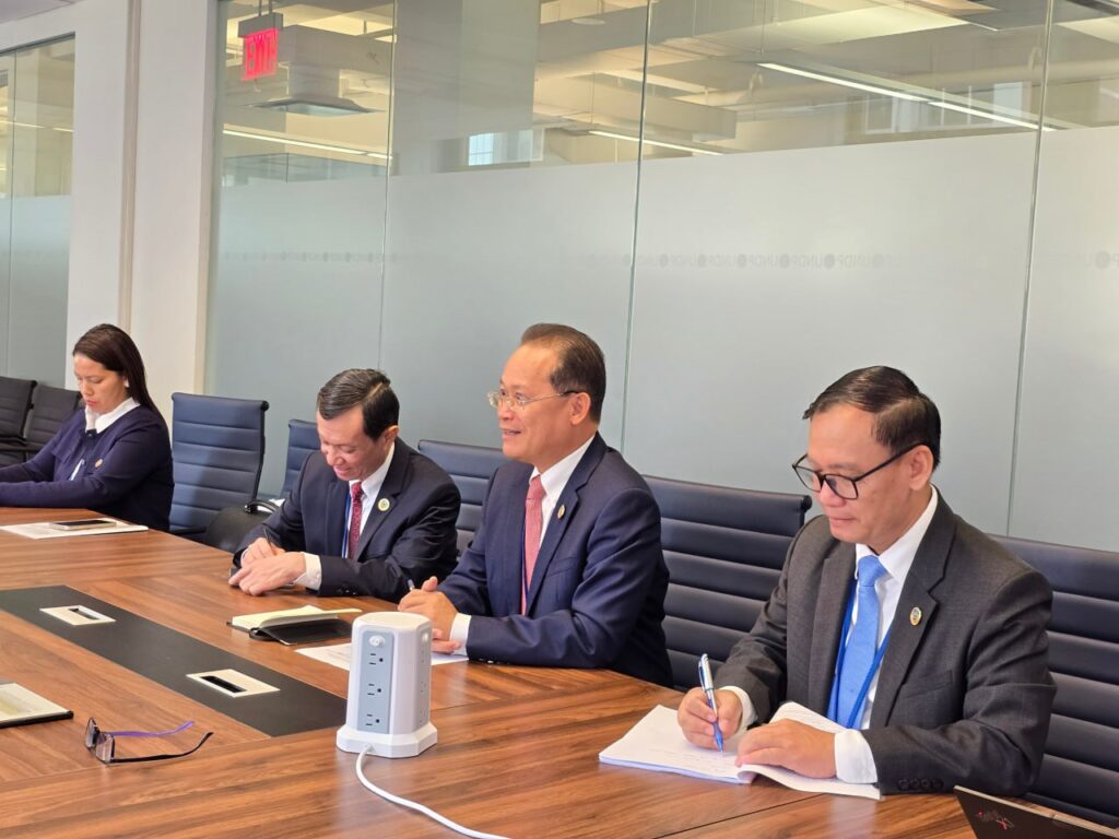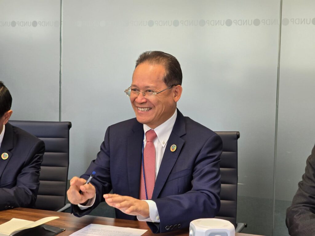 ភ្នំពេញ ៖ លោក អ៊ាង សុផល្លែត រដ្ឋមន្រ្តីក្រសួងបរិស្ថាន នៅថ្ងៃទី២៤ ខែកញ្ញា ឆ្នាំ២០២៥ បានជួបពិភក្សាជាមួយ លោក Marcos Neto អគ្គនាយករង និងជានាយកមណ្ឌលមូលនិធិនិរន្តរភាព នៃអង្គការ UNDP ដើម្បីស្វែងរកសកម្មភាពអាទិភាព សម្រាប់អនុវត្តNDC3.0 ក្នុងវិស័យទាំងប្រាំ រួមមាន ថាមពល ឧស្សាហកម្ម កសិកម្ម ព្រៃឈើ និងសំណល់។