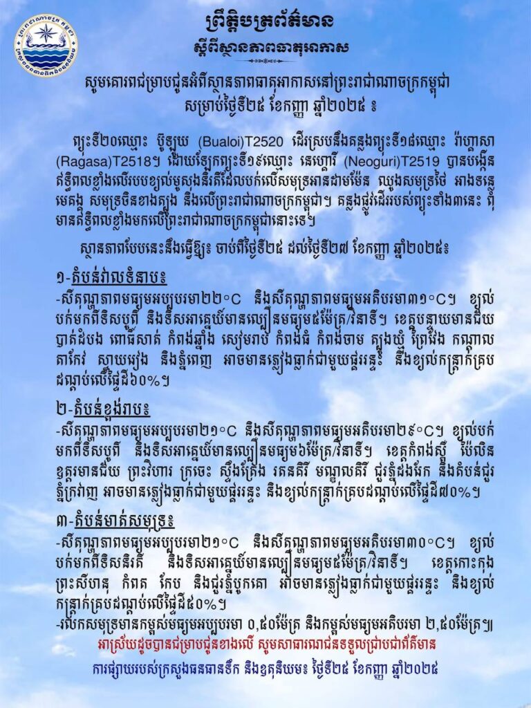 ព្យុះប៊ូឡូយ , រ៉ាហ្គាសា និងនេហ្គោរី ពុំមានឥទ្ធិពលខ្លាំងលើកម្ពុជាទេ