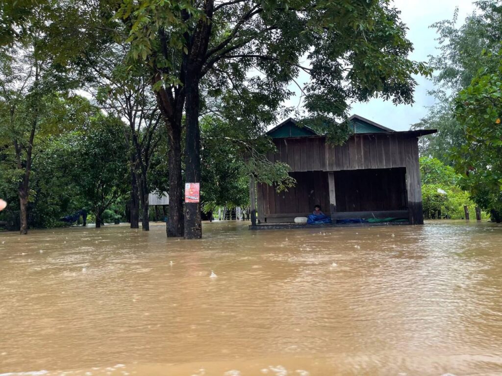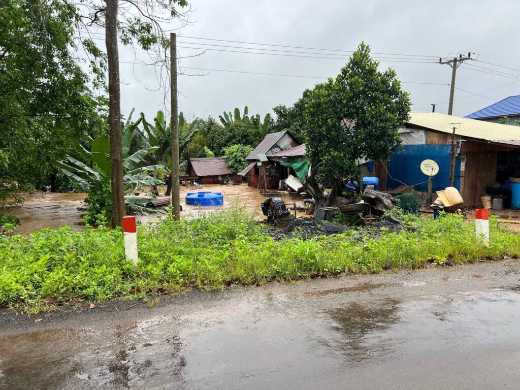 ទឹកជំនន់ នៅតែបន្តជន់លិច កំណាត់ផ្លូវបំបែក ស្រុកលំផាត់ ទៅស្រុកបរកែវ ខេត្តរតនគិរី