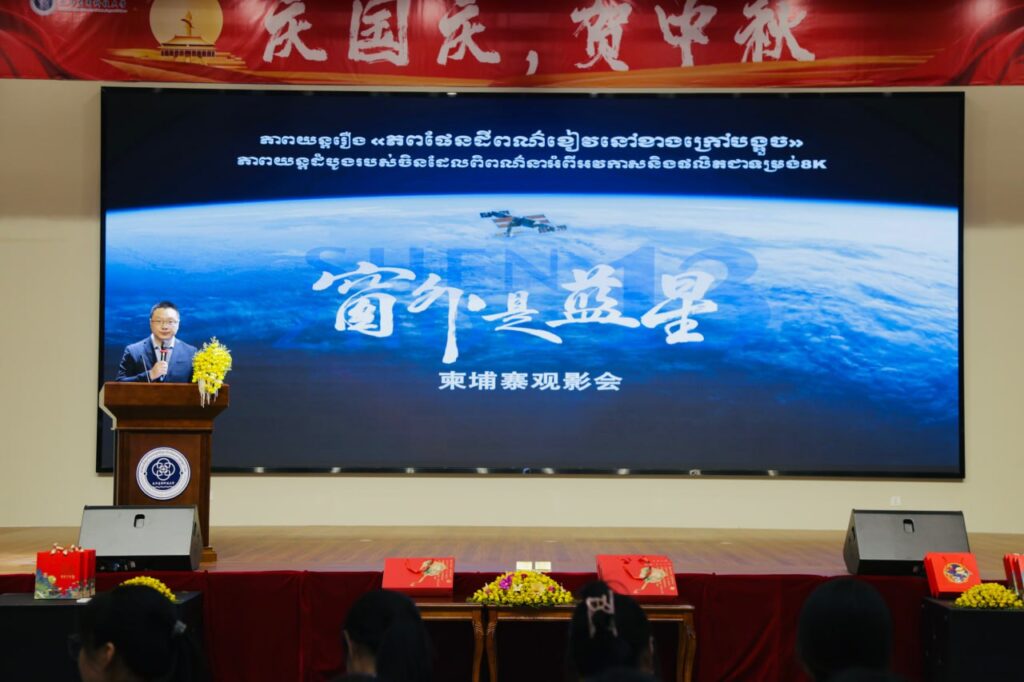 ភ្នំពេញ៖ ភាពយន្តឯកសារលំហអាកាសកម្រិត 8K Ultra HD ដំបូងគេរបស់ប្រទេសចិន ដែលផលិតដោយ អគ្គស្ថានីយវិទ្យុ និងទូរទស្សន៍មជ្ឈិមចិន មានចំណងជើងថា “ភពផែនដីពណ៌ខៀវនៅខាងក្រៅបង្អួច” ត្រូវបានចាក់បញ្ចាំងជាសាធារណៈហើយកាលពីរសៀលថ្ងៃទី១ ខែតុលា ឆ្នាំ២០២៥ នៅក្នុងសាកលវិទ្យាល័យបច្ចេកវិទ្យា និងវិទ្យាសាស្ត្រកម្ពុជា-ចិន ដោយមានអ្នកចូលរួមទស្សនាដោយផ្ទាល់ជាង ៤០០នាក់ភាគច្រើនជាសិស្ស និងនិស្សិតមកពីសាកលវិទ្យាល័យផ្សេងៗ។