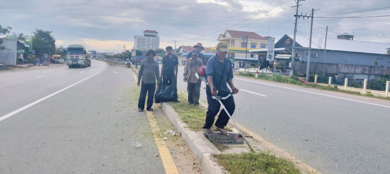 អាជ្ញាធរស្រុកក្រគរ រៀបចំសំអាត់បរិស្ថាន និង តុបតែងដើមឈើ តាមដងផ្លូវជាតិលេខ៥