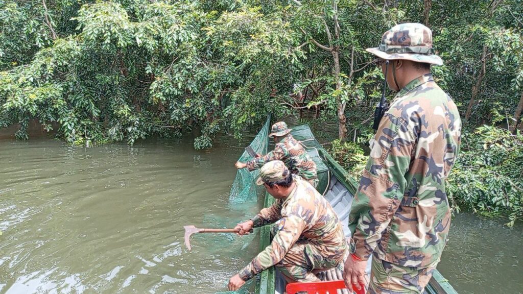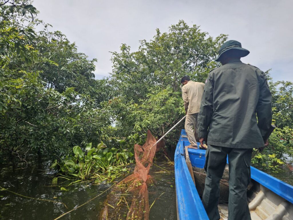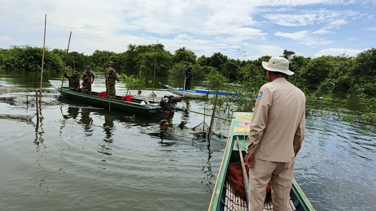 ជាក់ស្ដែងកម្លាំងជំនាញបានចុះសង្ក្រាបបទល្មើសនេសាទបឹងទន្លេសាប ជាលទ្ធផលអនុវត្តបាន០១ករណី បានរុះរើ និងបំផ្លាញចោលឧបករណ៍នេសាទខុសច្បាប់នៅហ្នឹងកន្លែងរួមមាន÷ របាំងស្បៃមុងចំនួន៣៤របាំង ប្រវែង ១.៥២០ម៉ែត្រ ឡុកចំនួន៣៤គ្រឿង លូចំនួន៣៦មាត់ បង្គោលចំនួន៩៤០ដេីម ចាក់លែងត្រីចម្រុះទំងន់៥០គីឡូក្រាម ចូលទន្លេវិញ៕