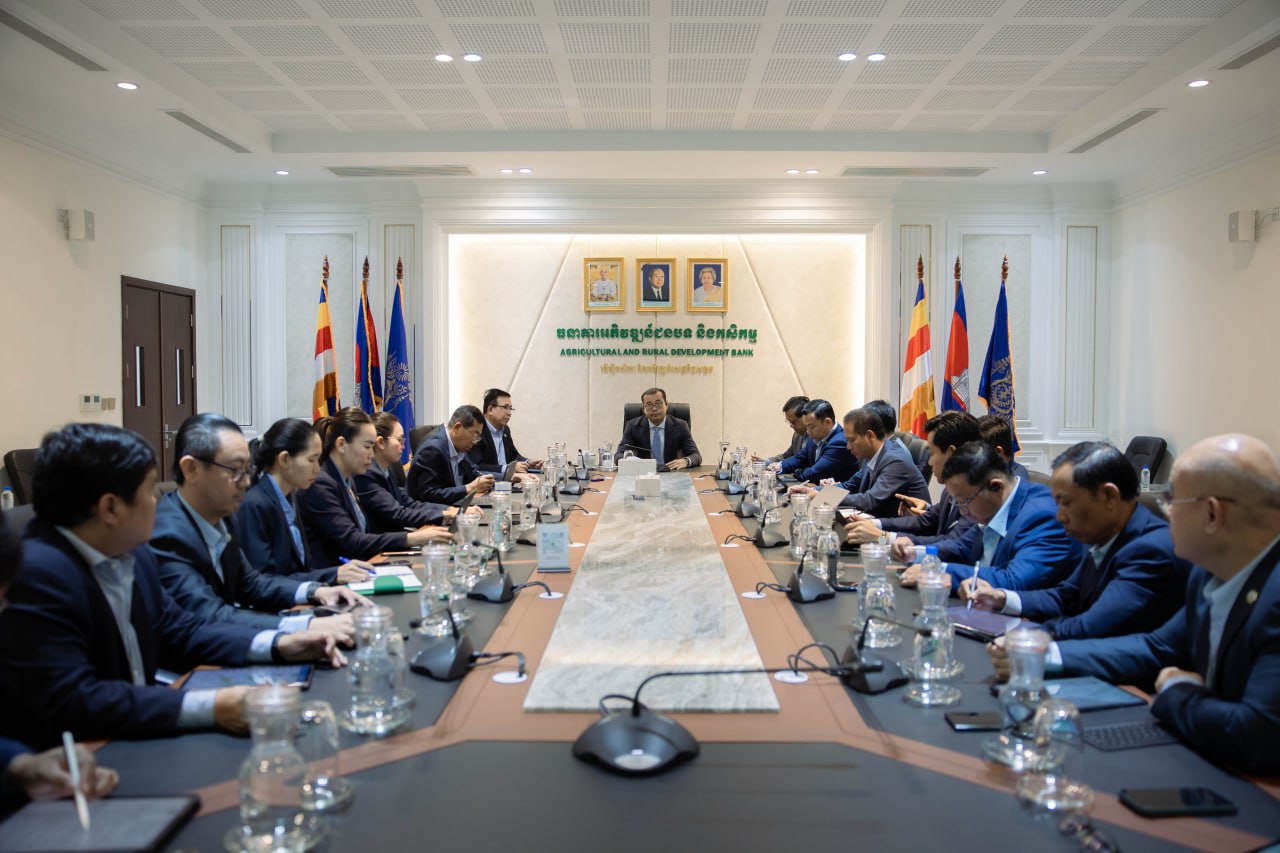 ភ្នំពេញ៖លោកបណ្ឌិត កៅ ថាច ប្រតិភូរាជរដ្ឋាភិបាល ទទួលបន្ទុកជាអគ្គនាយកធនាគារ អភិវឌ្ឍន៍ជនបទ និងកសិកម្ម (ARDB) បានដឹកនាំកិច្ចប្រជុំថ្នាក់ដឹកនាំ ដើម្បីពិនិត្យ-តាមដាន និងពិភាក្សាស្តីពី៖ វឌ្ឍនភាពការងារសំខាន់ៗ ប្រចាំខែ របស់ធនាគារ ARDB ដែលអនុវត្តស្របតាមផែនការ សកម្មភាពប្រចាំឆ្នាំរបស់ធនាគារ ARDB និងទិសដៅការងារ និង របៀបវារៈផ្សេងៗទៀត នាព្រឹកថ្ងៃចន្ទ ទី១៣ ខែតុលា ឆ្នាំ២០២៥, នៅទីស្នាក់ការកណ្តាលរបស់ធនាគារអភិវឌ្ឍន៍ជនបទ និងកសិកម្ម ។