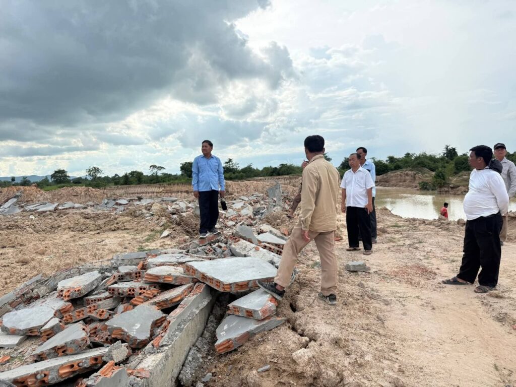 ខេត្តតាកែវ ៖ បន្ទាប់ពី លោក ថោ ជេដ្ឋា រដ្ឋមន្រ្តីក្រសួងធន់ធានទឹក និងឧតុនិយម និងលោក វី សំណាង អភិបាល នៃគណអភិបាលខេត្តតាកែវ បានអញ្ចើញចូលរួម ដឹកនាំកម្លាំងមន្រ្តី មន្ទីរ អង្គភាពជំនាញពាក់ព័ន្ធ និងអាជ្ញាធរមូលដ្ឋាន ចុះត្រួតពិនិត្យស្ថានភាពជាក់ស្តែង នៃការសាងសង់របងថ្ម ប្រវែង ១៤៨ម៉ែត ដែលសង្ស័យ រំលោភបំពានដីចំណីមាត់ស្ទឹងស្លាគូររួចមក គិតត្រឹម ម៉ោង ១៦.១៦នាទីល្ងាចថ្ងៃទី១៣ ខែតុលា ឆ្នាំ២០២៥នេះ ត្រូវបានម្ចាស់សំណង់វាយកម្ទេចរំលំអស់ហើយ ស្ថិតនៅភូមិត្រពាំងពោធិ៍ ឃុំជាងទង ស្រុកត្រាំកក់ ខេត្តតាកែវ ។
