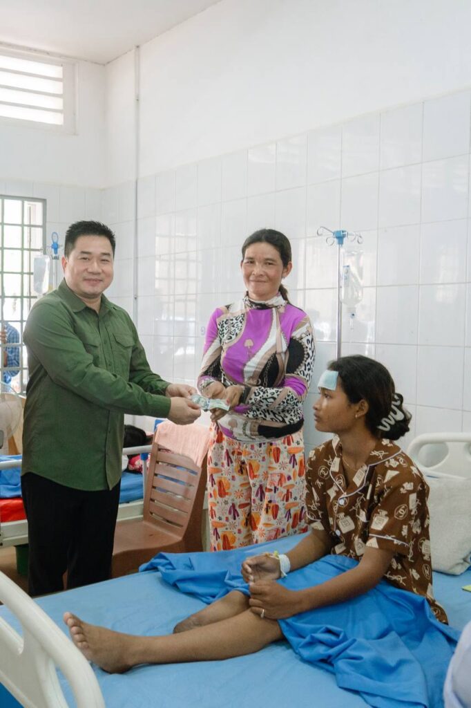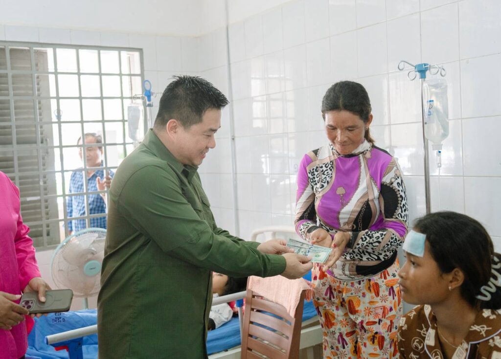 កំពង់ស្ពឺ ៖ កាលពីថ្ងៃទី១៤ ខែតុលា ឆ្នាំ២០២៥នេះ លោកឧត្តមសេនីយ៍ត្រី ម៉េង ស្រ៊ុន មេបញ្ជាការ កងរាជអាវុធហត្ថខេត្តកំពង់ស្ពឺ បានអញ្ជើញដឹកនាំ ក្រុមការងារ ចុះសួសុខទុក្ខដោយផ្ទាល់ ដើម្បីពិនិត្យមើលស្ថានភាពជាក់ស្តែងរបស់ កុមារី រឹម ស្រីនាត អាយុ ១២ឆ្នាំ បច្ចុប្បន្នរស់នៅភូមិអូរអង្គំ ឃុំអមលាំង ស្រុកថ្ពង ខេត្តកំង់ស្ពឺ ដែលគ្រួសាររបស់កុមារី មានជីវភាពខ្វះខាត និង កំពុងជួបការលំបាក ដោយគ្មួយស្រីពិការជើងខាងស្តាំង និងបច្ចុប្បន្នក៏មាន ជំងឺគ្រុនឈាម ហើយកំពុងសម្រាកព្យាបាលនៅបន្ទប់សង្គ្រោះបន្ទាន់(ICU) នៃមន្ទីរពេទ្យបង្អែកខេត្តកំពង់ស្ពឺ ។