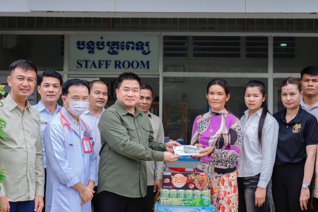 នាពេលនោះដែរ ដោយមើលឃើញ ជាក់ស្តែងអំពីស្ថានភាពក្មួយស្រី ដែលកំពុងជួបការលំបាក និងមានជីវភាពភាពខ្វះខាតជាខ្លាំងផងនោះ លោកឧត្តមសេនីយ៍ត្រី ម៉េង ស្រ៊ុន មេបញ្ជាការ បានឧបត្ថម្ភជាថវិការចំនួន១,០០០,០០០រៀល(មួយលានរៀល) ព្រមទាំងសម្ភារៈគ្រឿងឧបភោគបរិភោគរួមមាន ៖
