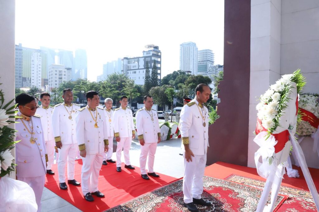ភ្នំពេញ៖ ឧកញ៉ាសាស្រ្តាចារ្យសមូហកបណ្ឌិត ឡី សុភាព ប្រធានសមាគមសហព័ន្ធវិនិយោគិនកម្ពុជា នាព្រឹកថ្ងៃទី១៥ ខែតុលា ឆ្នាំ២០២៥នេះ បានអញ្ជើញដឹកនាំប្រតិភូ សមាគមសហព័ន្ធវិនិយោគិនកម្ពុជា ចូលរួមថ្វាយកម្រងផ្កា គោរពព្រះវិញ្ញាណក្ខន្ធ ព្រះករុណា ព្រះបាទសម្ដេចព្រះ នរោត្ដម សីហនុ ព្រះមហាវីរក្សត្រ ព្រះវររាជបិតាឯករាជ្យ បូរណភាពទឹកដី និងឯកភាពជាតិខ្មែរ «ព្រះបរមរតនកោដ្ឋ» ជាទីគោរពសក្ការៈដ៏ខ្ពង់ខ្ពស់បំផុតនៃយើង ដើម្បីរំលឹកខួប១៣ឆ្នាំ នៃការយាងសោយព្រះទិវង្គតរបស់ព្រះអង្គ។