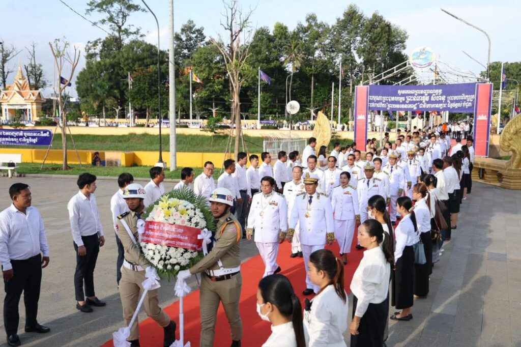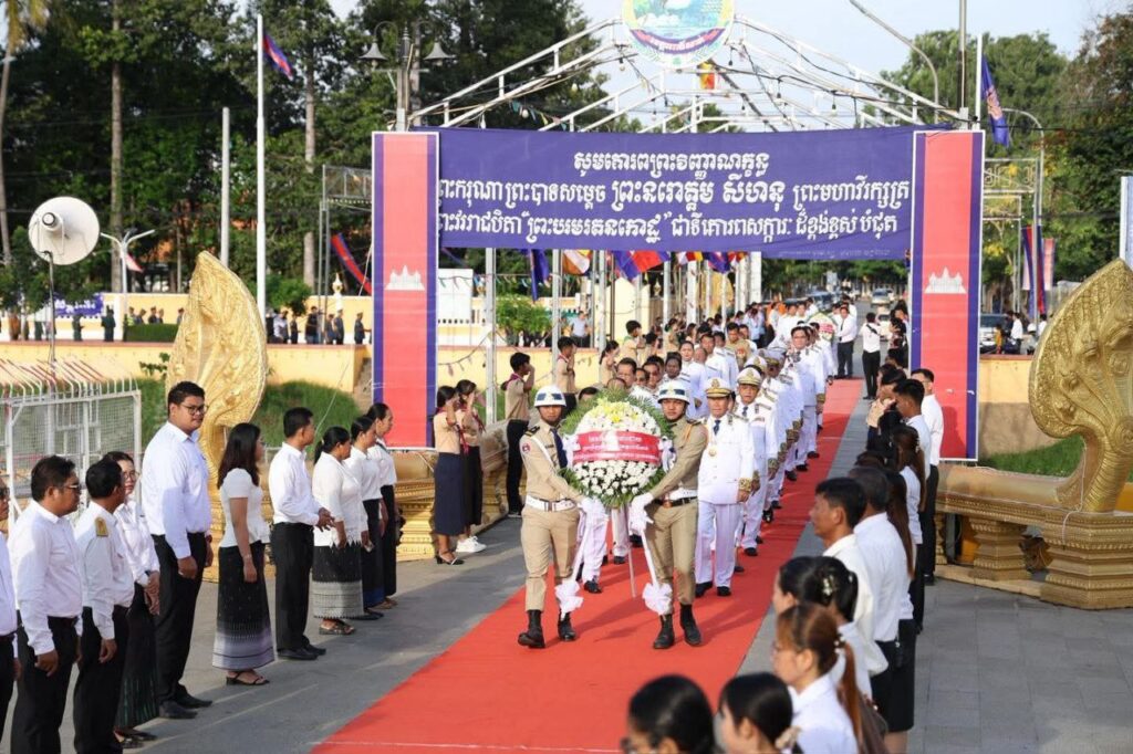 ពោធិ៍សាត់ ៖ នៅព្រឹកថ្ងៃទី១៥ ខែតុលា ឆ្នាំ២០២៥ លោកឧត្តមសេនីយ៍ត្រី ហៀង ស៊ីថា ស្នងការរង តំណាងខ្ពង់ខ្ពស់លោកឧត្តមសេនីយ៍ទោ ស ថេង ស្នងការនគរបាលខេត្ត ព្រមទាំងគណៈស្នងការ​ ដឹកនាំកម្លាំងក្រោមឱវាទ ចូលរួមពិធីគោរពវិញ្ញាណក្ខន្ធ ព្រះករុណា ព្រះបាទ សម្តេច ព្រះនរោត្តមសីហនុ ព្រះបរមរតនៈកោដ ព្រះមហាវិរក្សត្រ ព្រះវររាជបិតាជាតិ គម្រប់ខួប១៣ឆ្នាំ ក្រោមអធិបតីភាពលោក ម៉ក់ រ៉ា ប្រធានក្រុមប្រឹក្សាខេត្ត និងលោក ខូយ រីដា អភិបាល នៃគណៈអភិបាលខេត្តពោធិ៍សាត់ លោក លោកស្រី សមាជិកក្រុមប្រឹក្សាខេត្ត អភិបាលរងខេត្ត ថ្នាក់ដឹកនាំ មន្ត្រីរាជការ កងកម្លាំងប្រដាប់អាវុធទាំង៣ប្រភេទ លោកគ្រូអ្នកគ្រូ សិស្សានុសិស្ស ដើម្បីរំលឹក និងសម្តែងនូវការគោរពដឹងគុណដ៏ខ្ពង់ខ្ពស់បំផុត ថ្វាយចំពោះព្រះបរមរតនកោដ្ឋ ដែលព្រះអង្គបានលះបង់ និងបូជាព្រះកាយពល ដ៏ធំធេងបំផុតចំពោះជាតិមាតុភូមិកម្ពុជា។