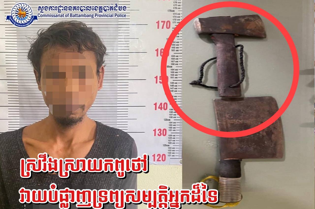 សមត្ថកិច្ចស្រុកគាស់ក្រឡ ឃាត់ខ្លួនបុរសម្នាក់ករណី ស្រវឹងស្រាទៅវាយបំផ្លាញទ្រព្យសម្បត្តិ អ្នកដទៃ
