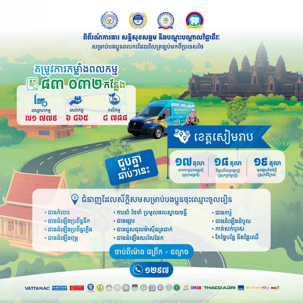 បងប្អូនពលករ! កុំភ្លេចចូលរួមពិព័រណ៍ការងារ នៅខេត្តសៀមរាប នាចុងសប្ដាហ៍នេះ ដើម្បីទទួលបានឱកាសការងារធ្វើភ្លាមៗ