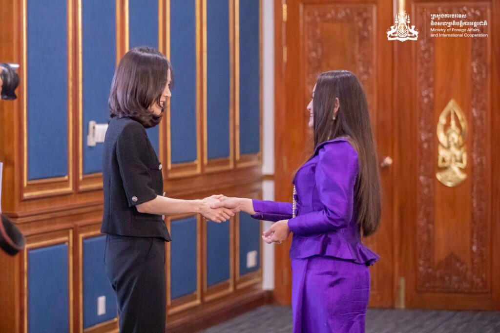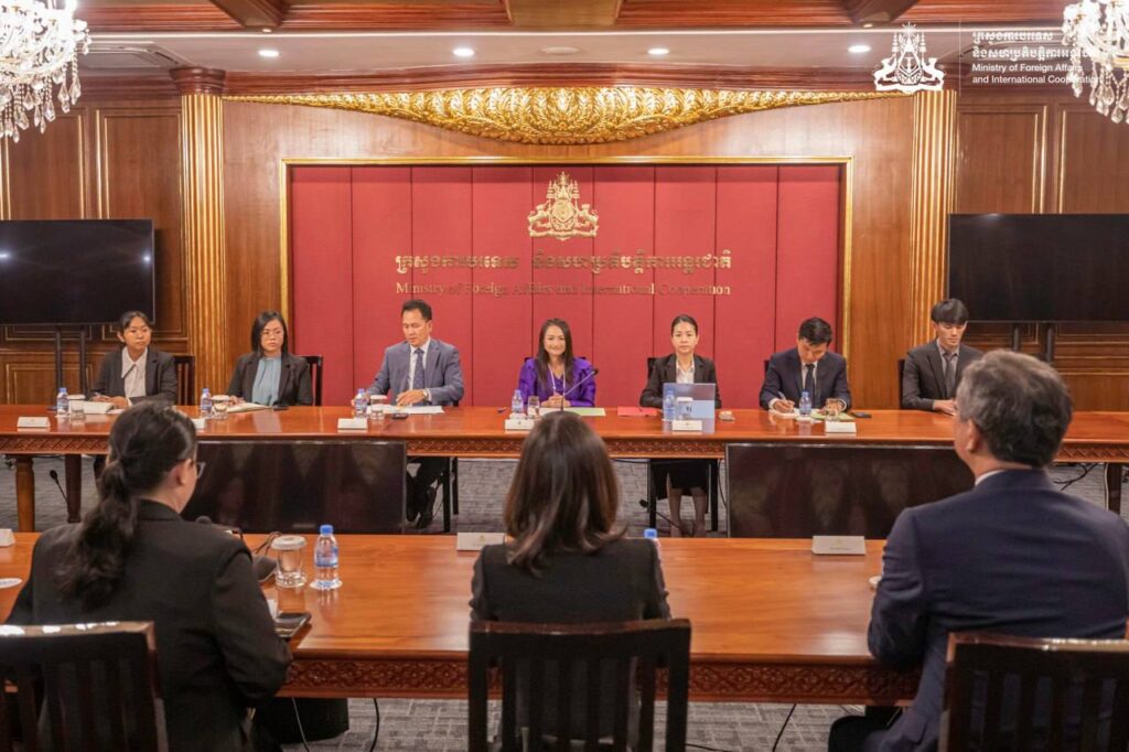 នៅថ្ងៃទី១៧ ខែតុលា ឆ្នាំ២០២៥ នៅទីស្តីការក្រសួងការបរទេស លោកស្រី យ៉ិនទៀង ពុទ្ធិរស្មី រដ្ឋលេខាធិការក្រសួងការបរទេស និងសហប្រតិបត្តិការអន្តរជាតិ បានទទួលជួបពិភាក្សាការងារជាមួយ លោកស្រី គឹម ជីណា អនុរដ្ឋមន្ត្រីទី២ នៃក្រសួងការបរទេសសាធារណរដ្ឋកូរ៉េ និងគណៈប្រតិភូ ដើម្បីពង្រឹងបន្ថែមទៀត នូវចំណងមិត្តភាពដ៏យូរលង់ និងភាពជាដៃគូយុទ្ធសាស្ត្ររវាងកម្ពុជា និងសាធារណរដ្ឋកូរ៉េ។