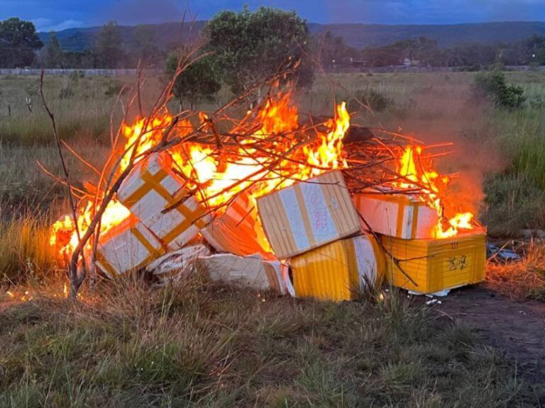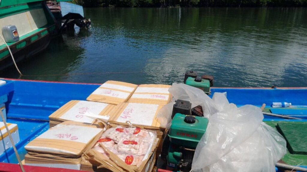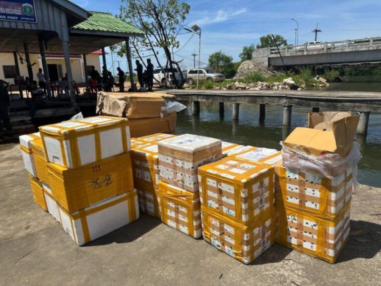 កោះកុង÷ សាច់បង្កក ដូចជា ជង្គង់មាន់ ស្លាបមាន់ ក្ដាម ជិត ១តោន ទើបត្រូវបានដុតកម្ទេចចោលមុននេះ ដោយកាលពីម៉ោង ៣ ទាបភ្លឺ នៅថ្ងៃទី១៧ ខែតុលា ឆ្នាំ២០២៥ កម្លាំងនរគបាលប៉ុស្ត ការពារ ព្រែកកោះយ៉ នៃវរ:នគបាលការពារព្រំដែនជើងទឹកលេខ២៦៩ ខេត្តកោះកុង បានឃាត់ទូក ដឹកសាច់បង្កកពីថៃ តាមផ្លូវទឹកចូលខេត្តកោះកុង រឹបអូសបានសាច់បង្កក ជាច្រើនប្រភេទ ព្រមទាំងឃាត់ខ្លួនមនុស្សបាន ៣នាក់។