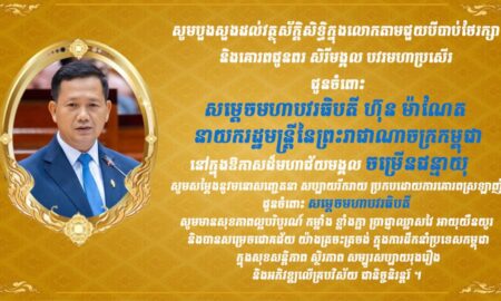 ឧត្តមសេនីយ៍ឯក រ័ត្ន ស្រ៊ាង ផ្ញើសារលិខិតជូនពរ សម្តេចមហាបវរធិបតី ហ៊ុន ម៉ាណែត ក្នុងឱកាសខួបកំណើតគម្រប់ ៤៨ ឈានចូល ៤៩ឆ្នាំ