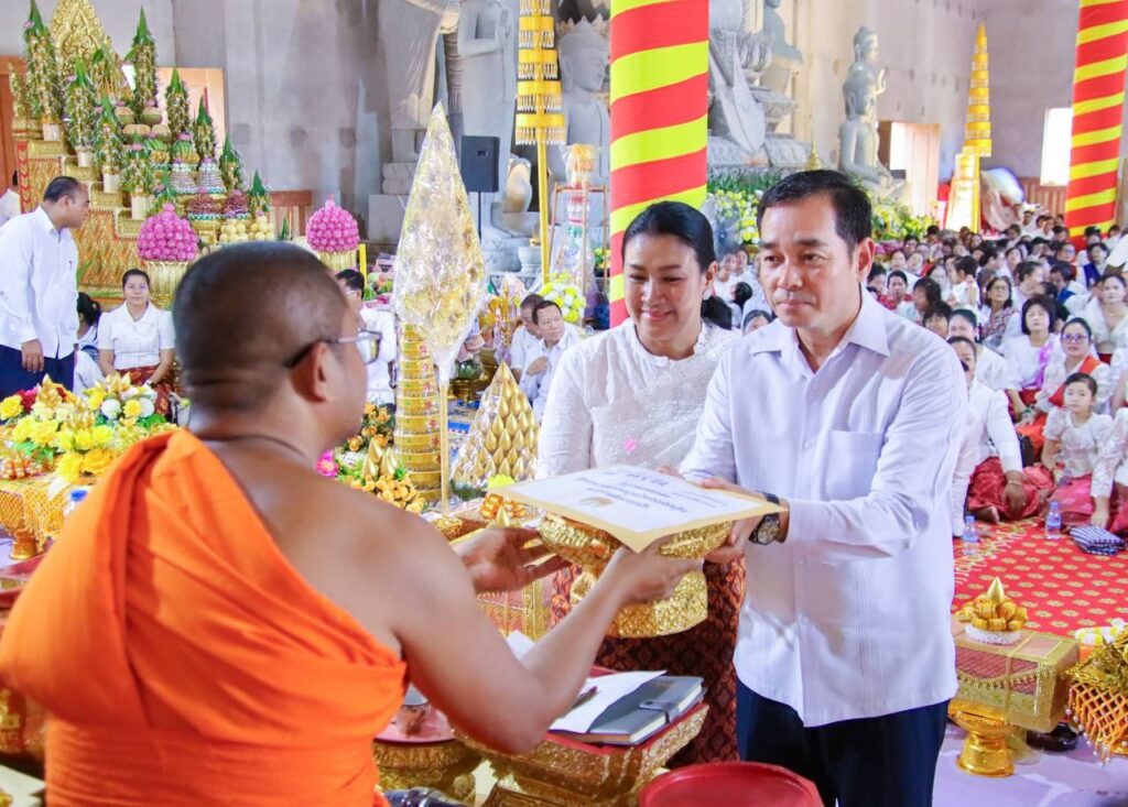 អភិបាលខេត្តកំពង់ចាម លោក អ៊ុន ចាន់ដា បានមានប្រសាសន៍ថា ការរៀបចំពិធីអង្គកឋិនទាននេះអាចប្រព្រឹត្តិទៅបានអាស្រ័យដោយកត្តាប្រទេសជាតិមានសុខសន្តិភាពពេញលេញ មានស្ថិរភាពនយោបាយ និងការអភិវឌ្ឍរីកចម្រើន លើគ្រប់វិស័យទាំងផ្នែកពុទ្ធចក្រ និងអាណាចក្រ ក្រោមការដឹកនាំដ៏ត្រឹមត្រូវរបស់សម្តេចមហាបវរធិបតី ហ៊ុន ម៉ាណែត នាយករដ្ឋមន្ត្រីនៃយើង៕