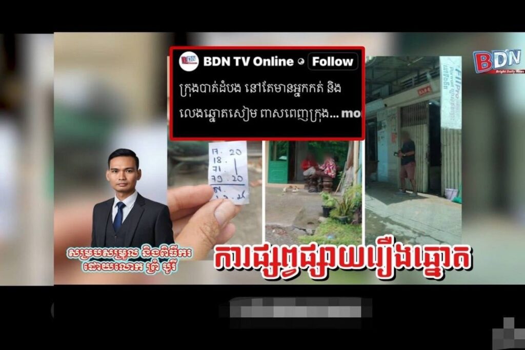 បាត់ដំបង៖ ក្រុមការងារព័ត៌មាននិងប្រតិកម្មរហ័សនៃស្នងការដ្ឋាននគរបាលខេត្តបាត់ដំបង សូមជម្រាប ជូនសាធារណជនជ្រាបថា ប៉ុន្មានថ្ងៃកន្លងមកនេះ មានការផ្សព្វផ្សាយក្នុងបណ្តាញសង្គម ពីបញ្ហាអ្នកញៀននឹងល្បែងឆ្នោតនៅក្រុងបាត់ដំបង ដែលការផ្សព្វផ្សាយនេះមានទាំងរូបភាពនិងទីតាំងនៃអ្នកលក់ឆ្នោតនោះទៀតផង។