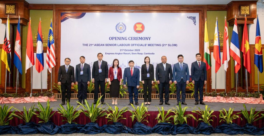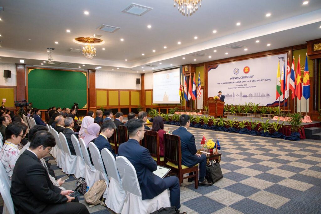 សៀមរាប៖លោក ហេង សួរ រដ្ឋមន្ត្រីក្រសួងការងារ និង បណ្ដុះបណ្ដាលវិជ្ជាជីវៈ បានអញ្ជើញជាអធិបតី ក្នុងពិធីបើកកិច្ចប្រជុំឧត្តមមន្ត្រីការងារ អាស៊ានលើកទី២១ (21st SLOM) ដែលបានប្រព្រឹត្តទៅ នៅថ្ងៃទី២១ ខែតុលា ឆ្នាំ២០២៥ នៅខេត្តសៀមរាប ។ នេះជាលើកទីពីរហើយ ដែលកម្ពុជាមានកិត្តិយស បានទទួលរៀបចំកិច្ចប្រជុំឧត្តមមន្រ្តីការងារអាស៊ានម្តងទៀត ដែលធ្លាប់ធ្វើជាម្ចាស់ផ្ទះ កាលពីឆ្នាំ២០១២ នៅរាជធានីភ្នំពេញ ដើម្បីបញ្ជាក់ឡើងវិញ នូវគោលបំណងរួមគ្នា ក្នុងការពង្រឹងកម្លាំងពលកម្មរបស់អាស៊ាន ប្រកបដោយបរិយាបន្ន ចីរភាព ភាពធន់ និងបានត្រៀមខ្លួន រួចរាល់សម្រាប់ពេលអនាគត ។