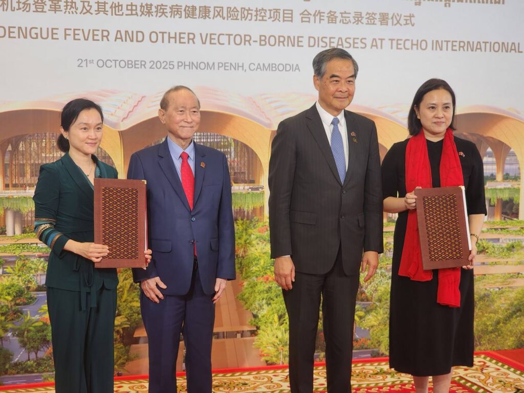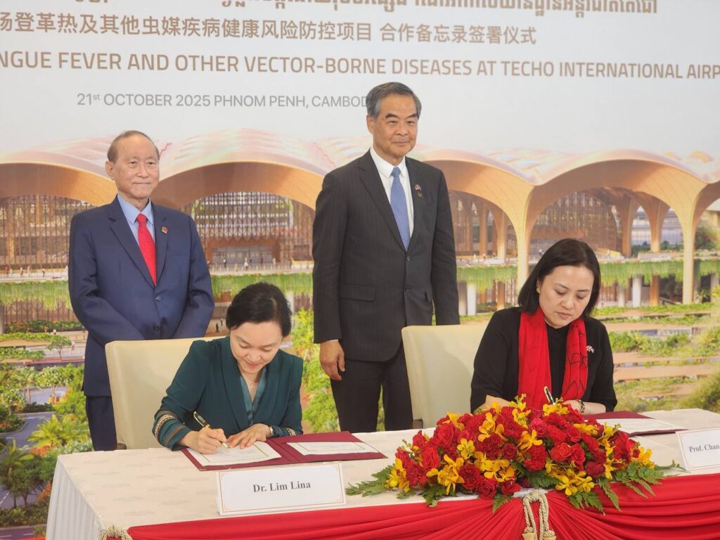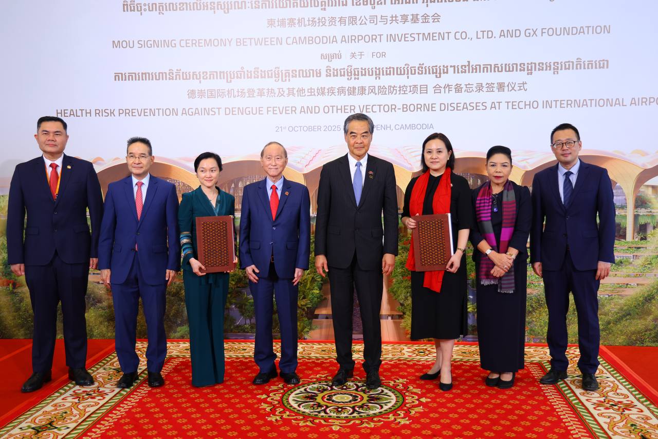 កាលពីរសៀលថ្ងៃទី២១ ខែតុលា ឆ្នាំ២០២៥នេះ ក្រុមហ៊ុន ខេមបូឌា អ៊ែរផត អ៊ិនវេសមិន ខូអិលធីឌី (CAIC) បានចុះហត្ថលេខា លើអនុស្សរណៈនៃការយោគយល់គ្នា ជាមួយមូលនិធិ GX FOUNDATION សម្រាប់ការការពារហានិភ័យជំងឺគ្រុនឈាម និងជំងឺឆ្លងបង្កដោយវ៉ិចទ័រផ្សេងៗ នៅអាកាសយានដ្ឋានអន្តរជាតិតេជោ ដោយមានការអញ្ជើញចូលរួម ពីលោកអ្នកឧកញ៉ាបណ្ឌិត ពុង ឃាវសែ ប្រធានក្រុមប្រឹក្សាភិបាលក្រុមហ៊ុន ខេមបូឌា អ៊ែរផេត អ៊ុនវេសមិន ឯ.ក (CAIC) និងលោក Leung Chun-Ying ប្រធានមូលនិធិ GX Foundation និងជាអនុប្រធានគណៈកម្មាធិការជាតិ នៃសន្និសីទប្រឹក្សាយោបល់នយោបាយប្រជាជនចិន។