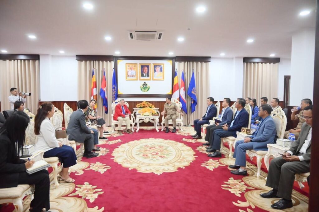 កំពង់ស្ពឺ៖ អភិបាលខេត្តកំពង់ស្ពឺ លោក ជាម ចន្ទ័សុភ័ណ បាន អនុញ្ញាតឱ្យលោក MAXIM BEHAR ប្រធានសភាពាណិជ្ជកម្ម និងប្រធានក្រុមប្រឹក្សាភិបាល នៃក្រុមហ៊ុន M3 Communications Group.Inc របស់សាធារណរដ្ឋប៊ុលហ្គារី និងប្រតិភូក្រសួងការបរទេស និងសហប្រតិបត្តិការអន្តរជាតិ ចូលជួបសម្តែងការគួរសម និងសិក្សាស្វែងយល់ពិភាក្សាការងារចាំបាច់មួយចំនួន នាថ្ងៃទី២២ខែតុលាឆ្នាំ២០២៥។