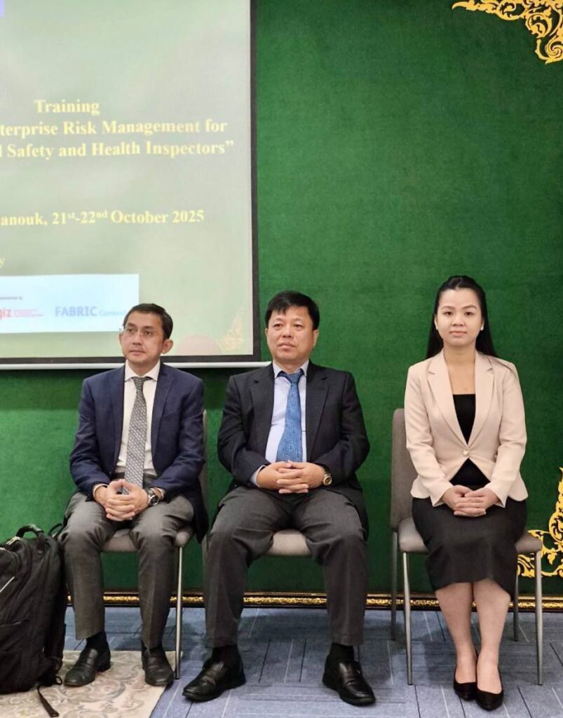 ព្រះសីហនុ ៖ វិទ្យាស្ថានជាតិការងារ និងនាយកដ្ឋានពេទ្យការងារ នៃក្រសួងការងារ និងបណ្តុះបណ្តាលវិជ្ជាជីវៈ សហការជាមួយគម្រោង GIZ FABRIC Cambodia នៃទីភ្នាក់ងារសហប្រតិបត្តិការអាល្លឺម៉ង់ បានរៀបចំវគ្គបណ្តុះបណ្តាល ស្តីពី ការគ្រប់គ្រងហានិភ័យនៅតាមសហគ្រាស ក្រុមហ៊ុន រោងចក្រ សម្រាប់អធិការពេទ្យការងារ ដោយមានការចូលរួមពីសិក្ខាកាមមកពីថ្នាក់ក្រសួង និងមន្ទីររាជធានី-ខេត្ត ចំនួន៩ រួមមាន៖ ខេត្តព្រះសីហនុ ខេត្តកោះកុង ខេត្តកំពត ខេត្តកែប ខេត្តកំពង់ស្ពឺ ខេត្តតាកែវ ខេត្តពោធិ៍សាត់ ខេត្តកណ្តាល និងរាជធានីភ្នំពេញ។