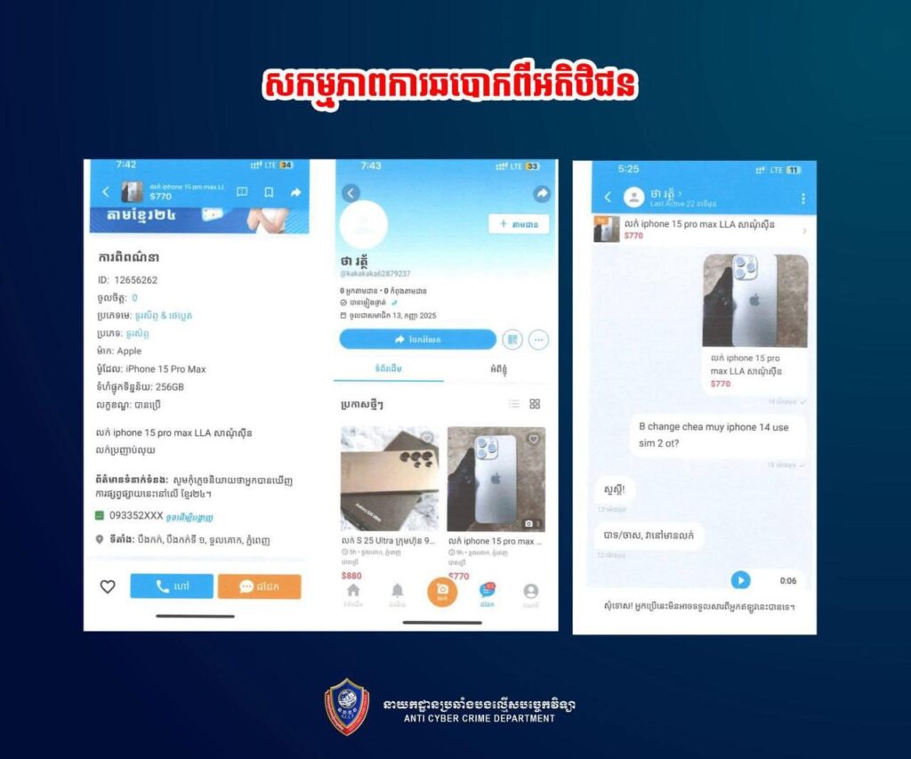 ភ្នំពេញ ៖ នាយកដ្ឋានប្រឆាំងបទល្មើសបច្ចេកវិទ្យា បានបើកការស្រាវជ្រាវ និងបង្រ្កាបលើករណីឆបោកប្រាក់ ក្រោមរូបភាពទិញ-លក់ទូរស័ព្ទតាមអនឡាញ បន្ទាប់ពីមានជនរងគ្រោះជាច្រើននាក់ បានមកដាក់ពាក្យបណ្ដឹង ។