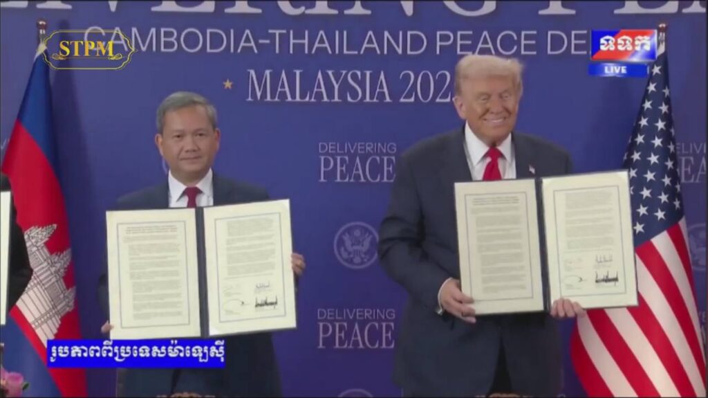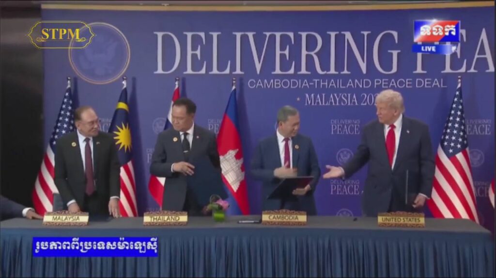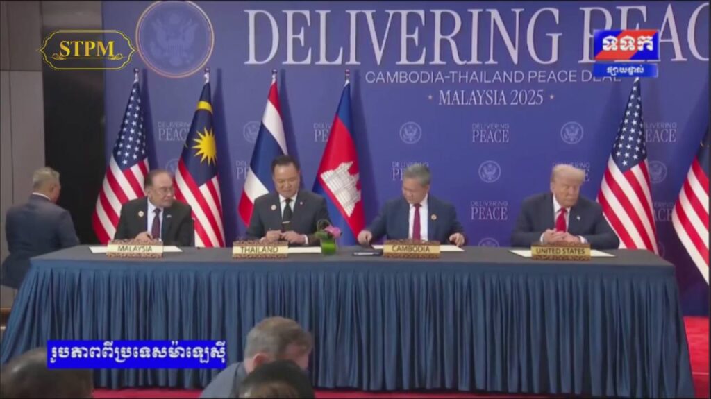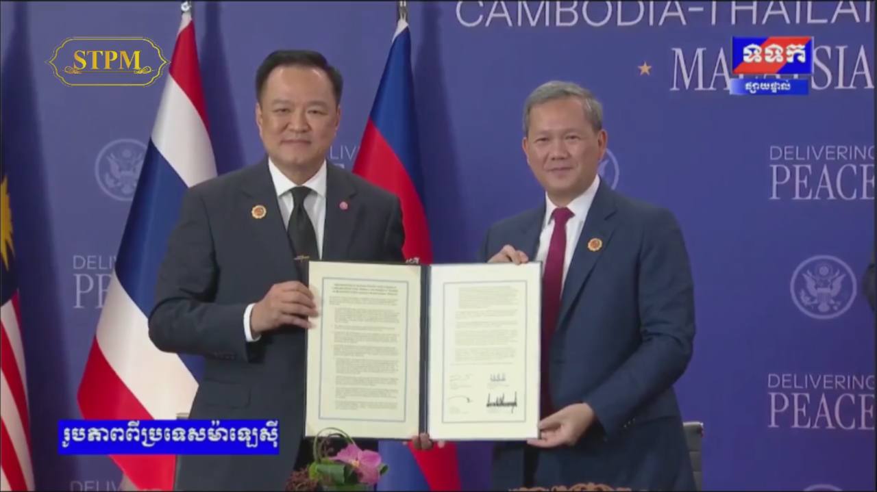 ភ្នំពេញ ៖ កិច្ចព្រមព្រៀង​សន្តិភាព​រវាង​កម្ពុជានិងថៃ ត្រូវបានចុះហត្ថលេខាហើយ ក្រោមអធិបតីភាពប្រធានាធិបតីអាមេរិក លោក ដូណាល់ ត្រាំនិងលិក អាន់វ៉ា អ៊ីប្រាហ៊ីម នាយករដ្ឋមន្រ្តីម៉ាឡេស៊ី នៅទីក្រុងគូឡាឡំពួរ ៕