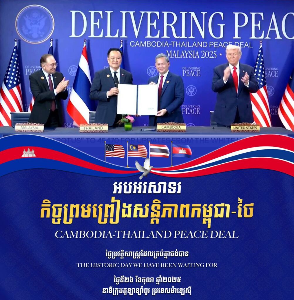 ភ្នំពេញ៖ ភ្លាមៗការចុះកិច្ចព្រមព្រៀងសន្តិភាពរវាងកម្ពុជា-ថៃនៅប្រទេសម៉ាឡេស៊ីក្រោមវត្តមានសាក្សីពីលោកប្រធានាធិបតីអាមេរិកឌូណាល់ត្រាំ និងនាយករដ្ឋមន្ត្រី ម៉ាឡេស៊ី លោក អានវ៉ា អ៊ីប្រាហីម លោក ហេង សួរ រដ្ឋមន្ត្រីក្រសួងការងារ និងបណ្តុះបណ្តាលវិជ្ជាជីវៈ នៅថ្ងៃទី២៦ ខែតុលា ឆ្នាំ២០២៥នេះ បានចេញសារអបអរសាទរយ៉ាងក្លៀវក្លាបំផុត។