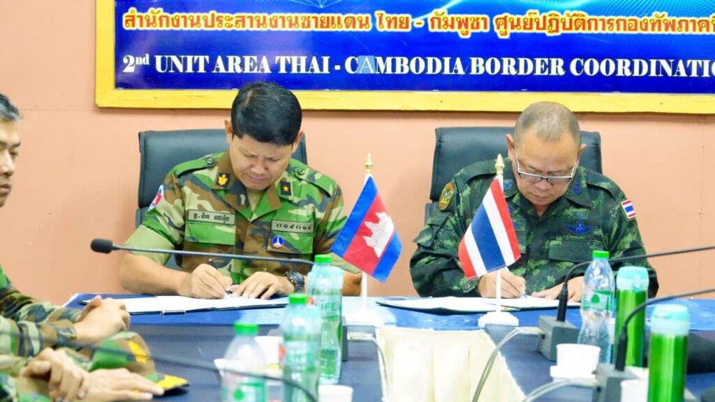 ការឯកភាពគ្នានេះ ធ្វើឡើងបន្ទាប់ពីការចុះហត្ថលេខាលើសេចក្តីថ្លែងការណ៍រួម នៅថ្ងៃទី២៦ ខែតុលា ឆ្នាំ២០២៥ នៅវេលាម៉ោង ៩យប់នេះ ។ ភាគីទាំងពីរបានធ្វើការកែសម្រួលយុទ្ធោបករណ៍ និងអាវុធធុនធ្ងន់របស់ខ្លួនដោយដកមួយផ្នែកនៃជំហានទី១ សម្រាប់ជានិមិត្តរូបនៃការប្តេជ្ញាចិត្តក្នុងការអនុវត្តនូវសេចក្តីថ្លែងការណ៍រួមនេះ ដែលអនុវត្តទៅតាមសេចក្តីថ្លែងការណ៍រួមទីក្រុងកូឡាឡាំពួរ ស្តីពីសន្តិភាពរវាងកម្ពុជានិងថៃ ដែលមានប្រធានាធិបតីអាមេរិក លោកដូណាល់ ត្រាំ និងនាយករដ្ឋមន្ត្រីម៉ាឡេស៊ី អាន់វ៉ា អ៊ីប្រាហ៊ីម ធ្វើជាសាក្សី