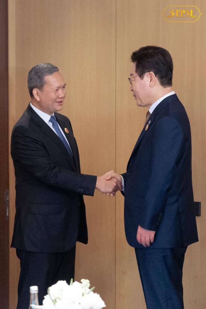 យោងតាមគេហទំព័រហ្វេសប៊ុករបស់ សម្ដេចធិបតី ហ៊ុន ម៉ាណែត បានឲ្យដឹងថា សម្ដេច ជួបពិភាក្សាការងារជាមួយលោក Lee Jae Myung ប្រធានាធិបតីនៃសាធារណរដ្ឋកូរ៉េ។