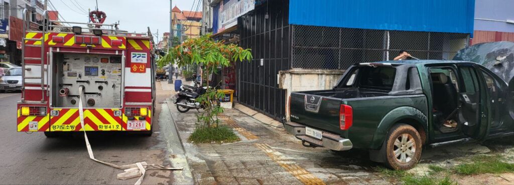 ករណីរថយន្តឆេះទាំងព្រលឹម នៅម្ដុំជិតផ្សារញ៉ែ ក្រុងសៀមរាប