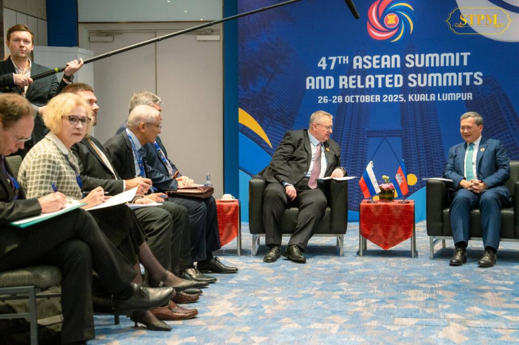 ភ្នំពេញ ៖ នាថ្ងៃទី២៨ ខែតុលា ឆ្នាំ២០២៥សម្តេចមហាបវរធិបតី ហ៊ុន ម៉ាណែត នាយករដ្ឋមន្រ្តី នៃកម្ពុជា បានអនុញ្ញាតឱ្យលោក Alexei Overchuk, ឧបនាយករដ្ឋមន្ត្រី នៃសហព័ន្ធរុស្ស៊ី ចូលជួបសម្ដែងការគួរសម និងពិភាក្សាការងារ ខណៈកម្ពុជា-រុស្ស៊ី ឯកភាពបន្តពង្រឹង និងពង្រីក កិច្ចសហប្រតិបត្តិការទ្វេភាគីថែមទៀត។